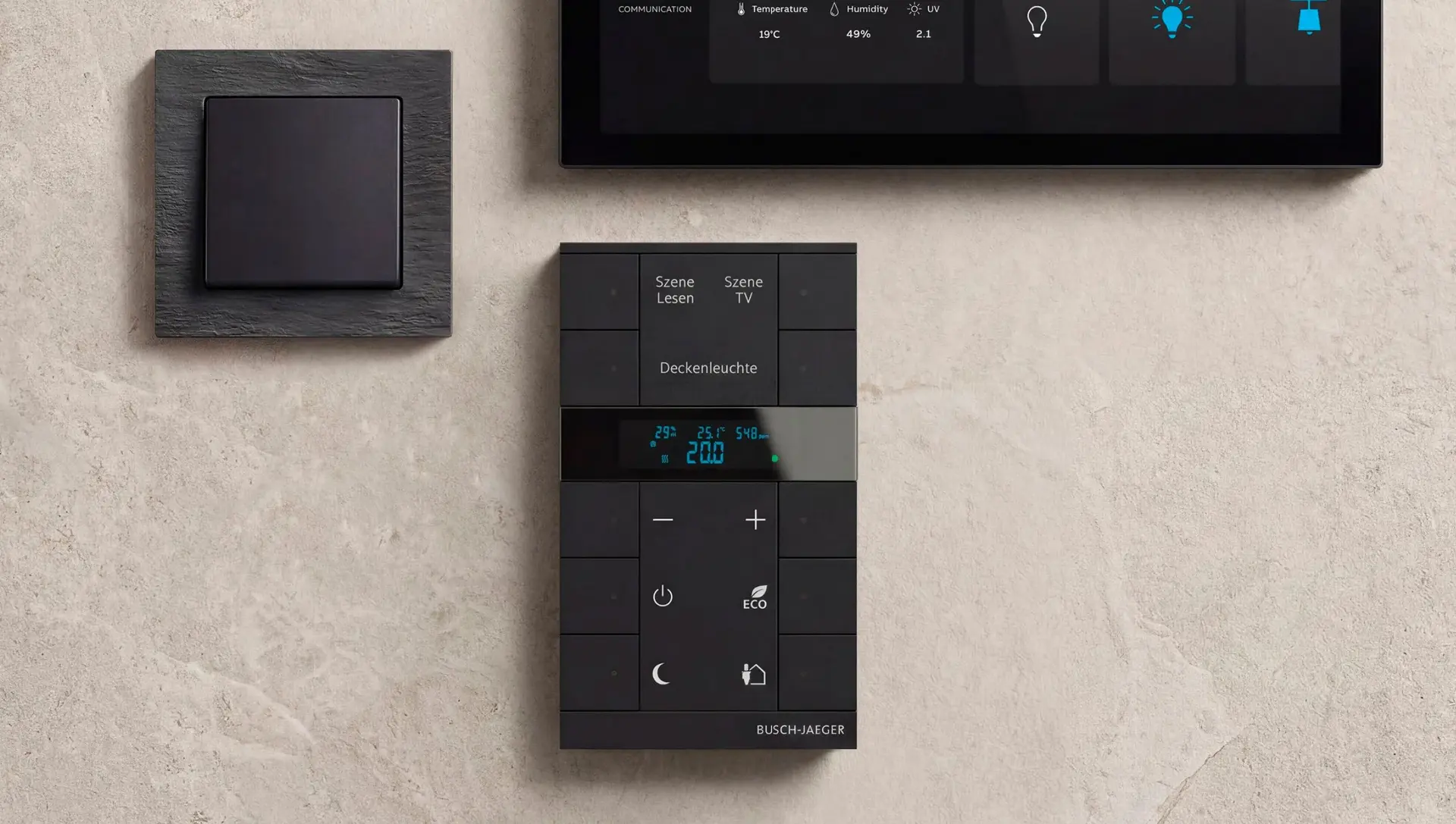 Mit dem sensorgesteuerten HD-Touch-Display kannst du bis zu 12 Funktionen in deinem Busch-free@home® und KNX System steuern. Das Bedienelement verfügt über einen integrierten Raumtemperaturregler und überzeugt durch ein modernes Design, erstklassige Qualität und eine intuitive Bedienoberfläche.