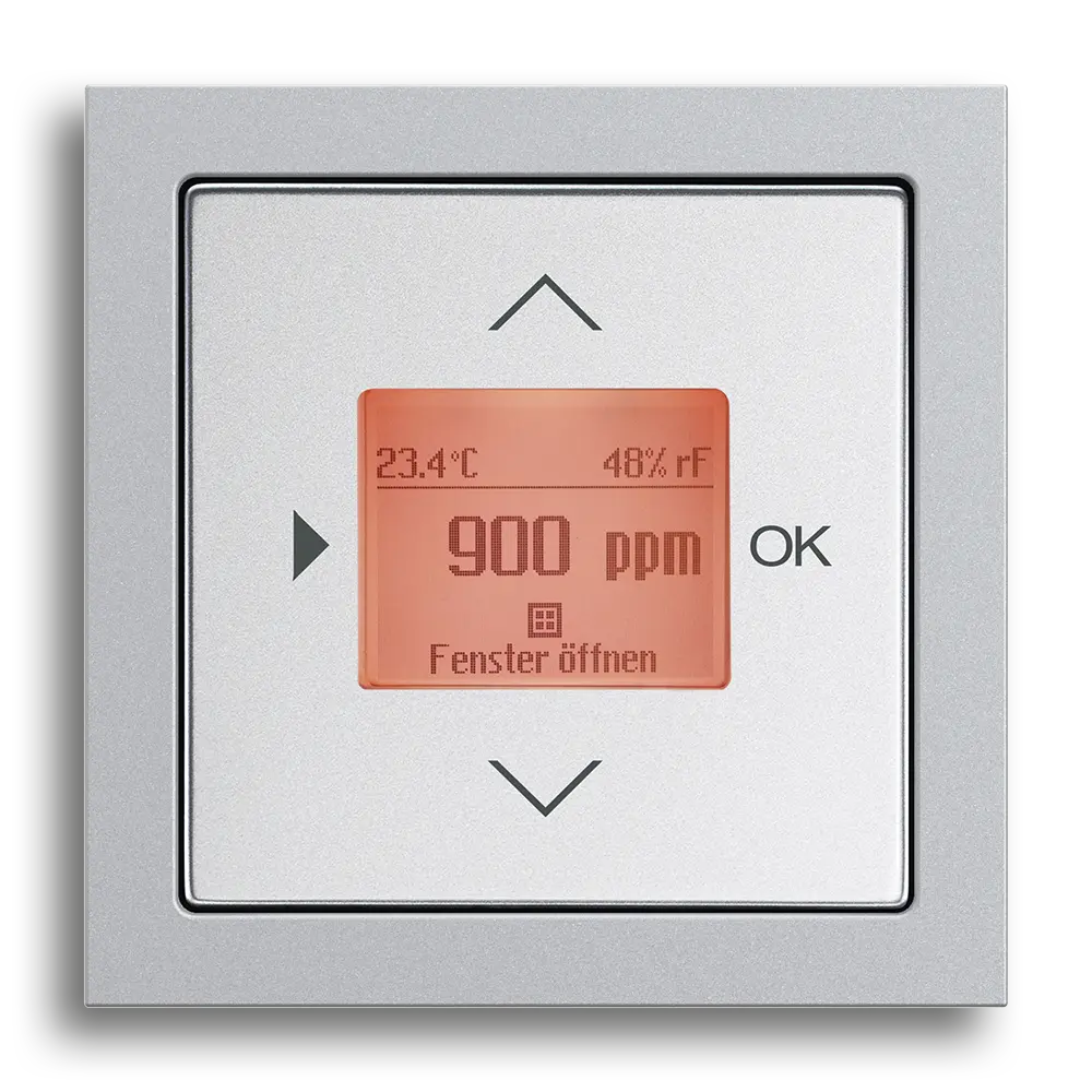 Ein CO₂ Melder hilft dir dabei, die Raumluftqualität zu kontrollieren. Aber warum ist das wichtig? Alle Häuser von heute, Privathäuser und öffentliche Gebäude jeder Art, müssen höhere Energieeffizienzstandards erfüllen, als es noch vor einigen Jahren der Fall war. Die Energieeinsparverordnung verlangt die Isolierung von Fenstern, Dach und Wand und führt zu sehr geringen Werten des Luftaustauschs. Der Vorteil, Energie einzusparen, führt zu einem Nachteil: Die CO₂-Konzentration in den Räumen steigt – ebenso die Luftfeuchtigkeit. Die Luft wird nur umgewälzt und keine Frischluft zugeführt. Der Busch-Raumluftsensor® CO₂ hilft dir, indem er die Luftqualität ständig überprüft und bei schlechter Luftqualität auf sich aufmerksam macht.
